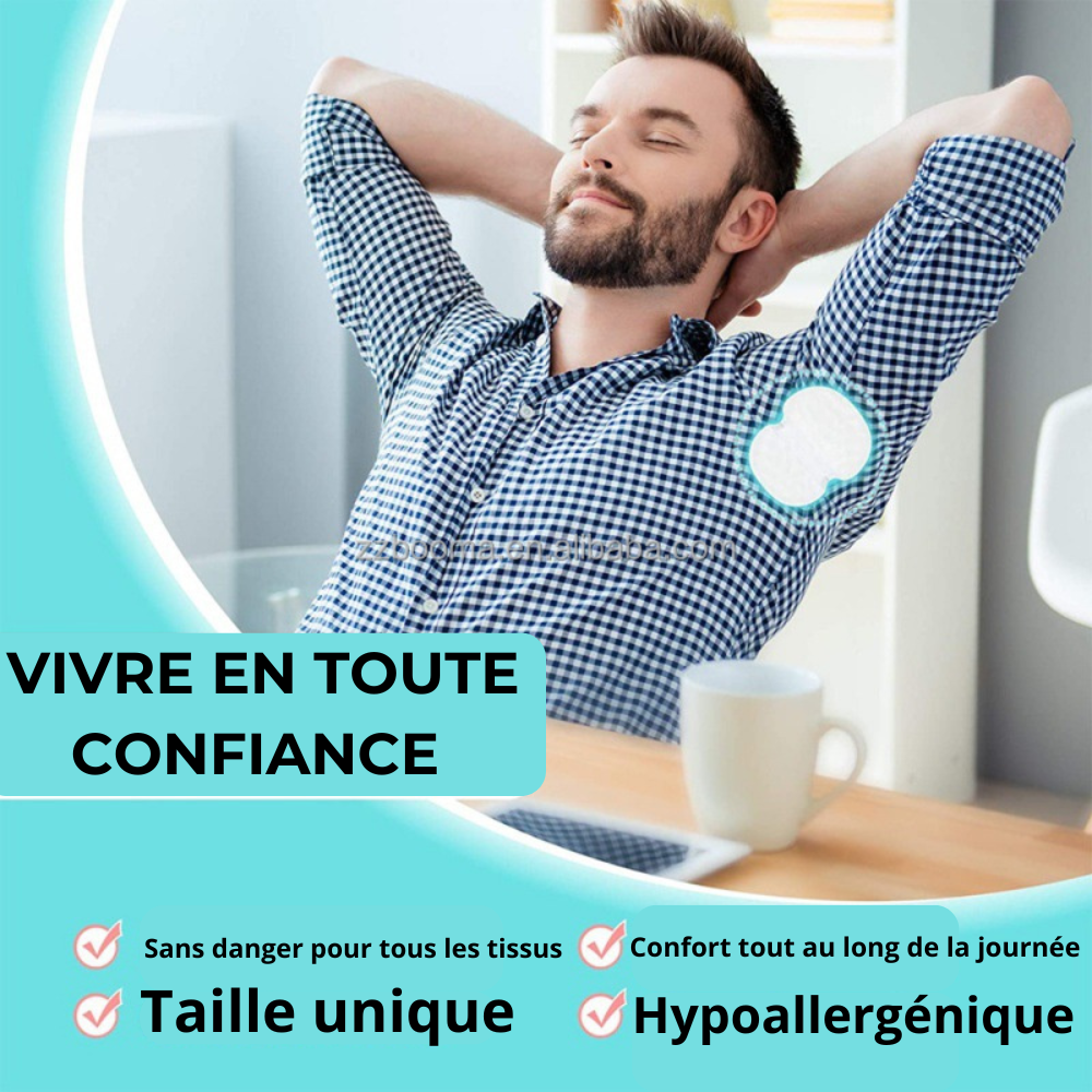 Nos patchs anti-transpiration sont conçus pour s'intégrer totalement à votre quotidien sans que personne ne remarque leur présence.